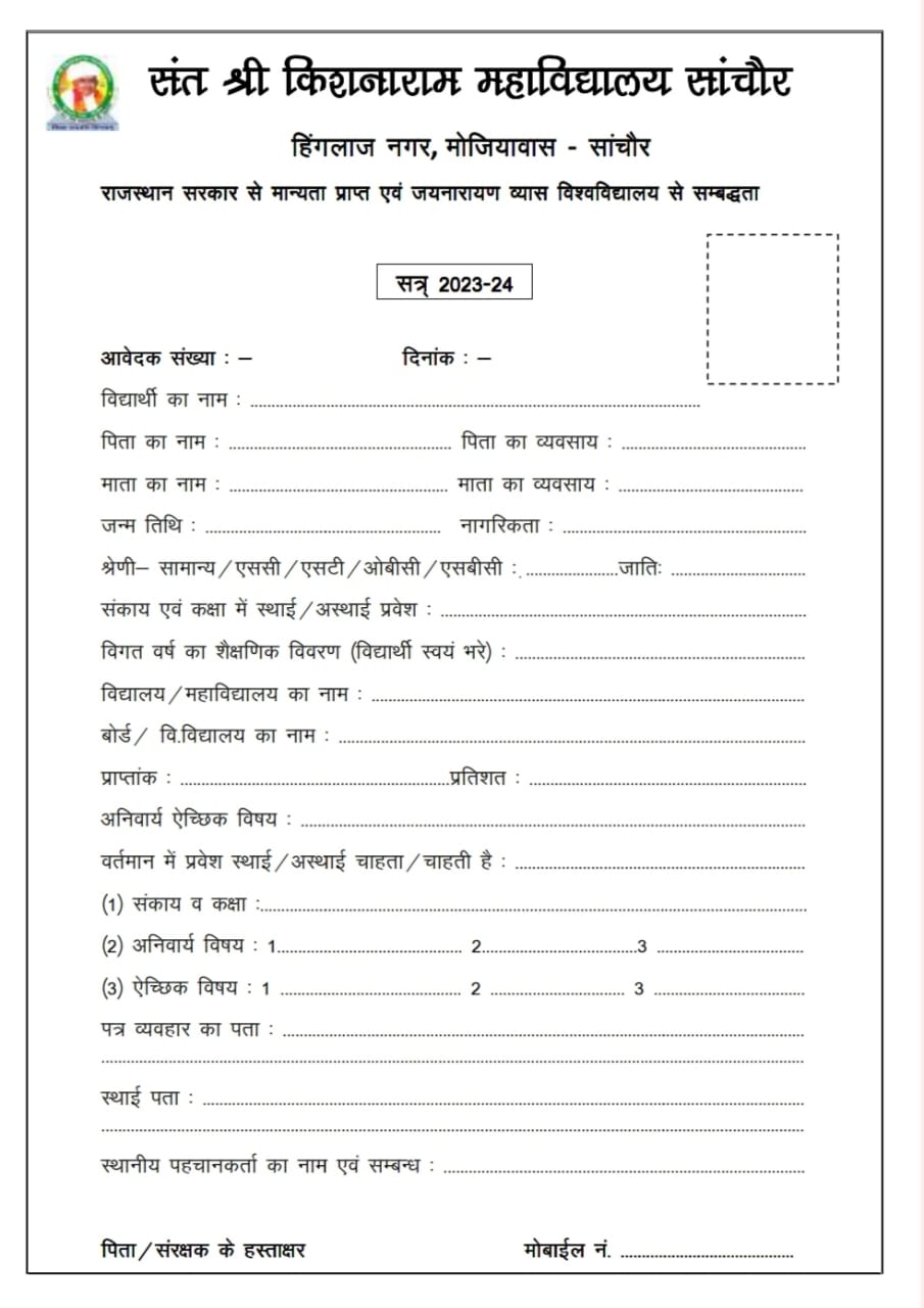 Contact Today for your Admission in Sant Shree Kisnaram college Sanchore and get golden chance to get better Education